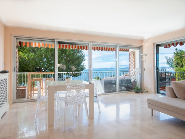 In a very beautiful luxury building on the Promenade des Anglais, a 4-room apartment of 107 m² with terrace and balcony. High floor. Beautiful panoramic view of the sea. A large living room of 35 m² with an open kitchen opening onto a square-shaped terrace with a sea view. A large entrance hall. 3 bedrooms and a balcony at the back. The......